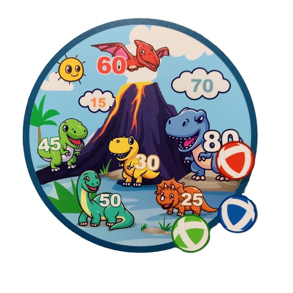 Tarcza z piłeczkami na rzepy. Wzór w dinozaury. Wymiary opakowania: 36.5 x 36.5 x 4 cm prečítať celé