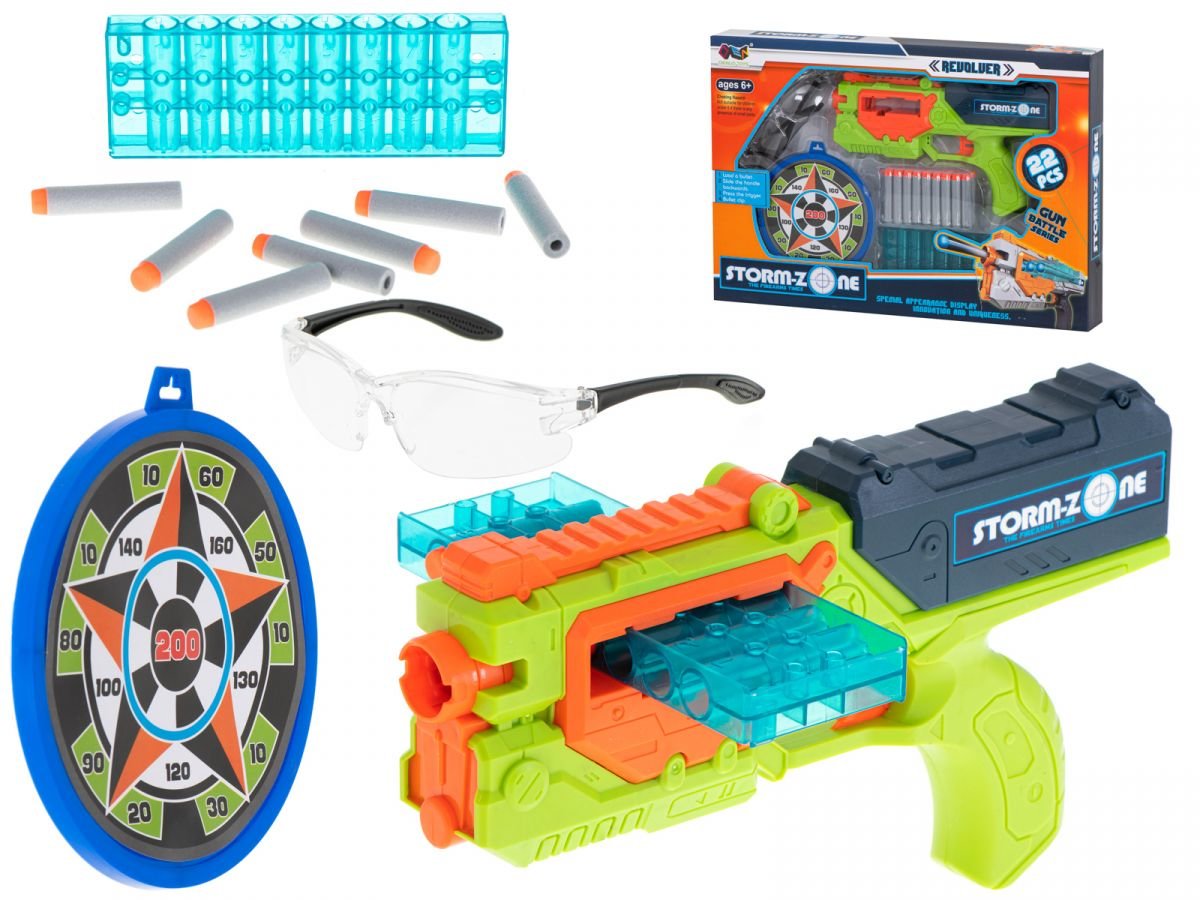 Pistole Storm Zone na pěnové náboje, zelená + brýle, terč, 18 nábojů