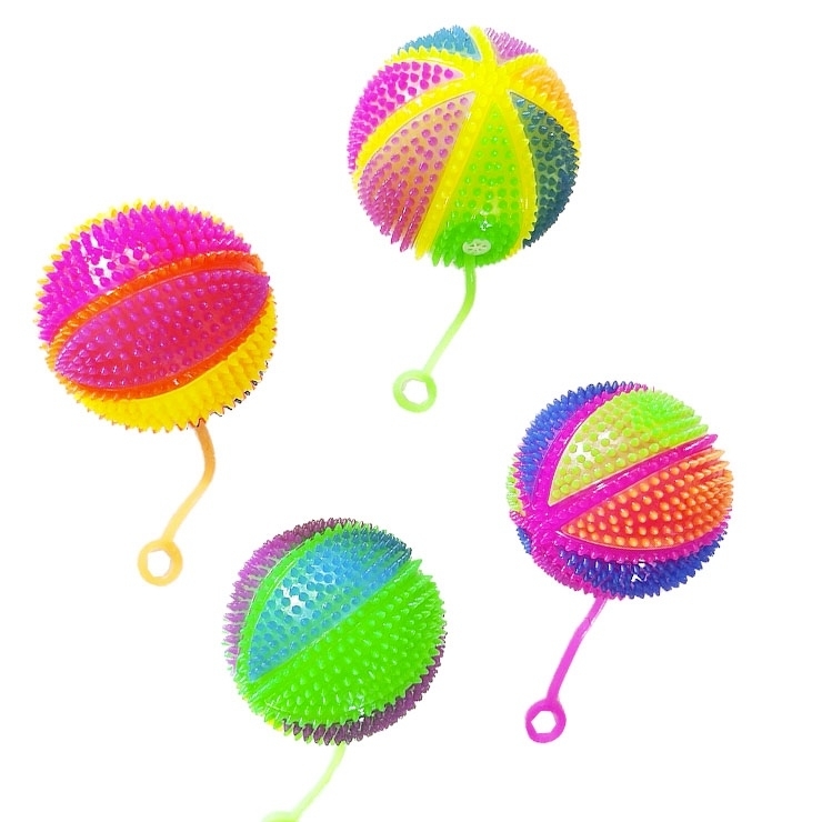 Míček svítící. Masážní míček větší, se světlem a s ostny v 4 barvách s průměrem 7,5 cm, po stisknutí píská, po úderu přerušovaně barevně svítí.Cena je za kus. prečítať celé