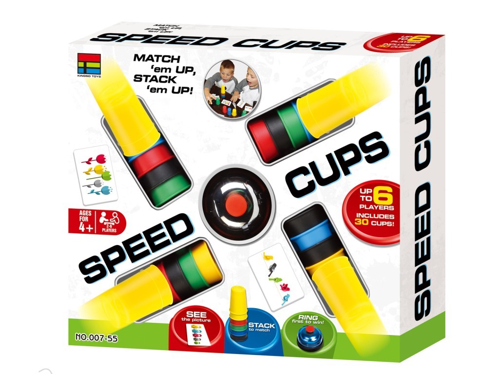 Hra pro 2 až 6 hráčů. Součástí 30 kalíšků., 1 zvonek, 24 kartiček s obrázky a návod. Otoč kartu a hraj! Vyhrává ten, kdo nasbírá nejvíce karet. Podívej se na obrázek, postav správně a zazvoň, vyhraj! První, kdo zazvoní vyhrává. Seřaď nebo naskládej svých 5 kalíšků tak, aby odpovídaly pořadí na obrázku.