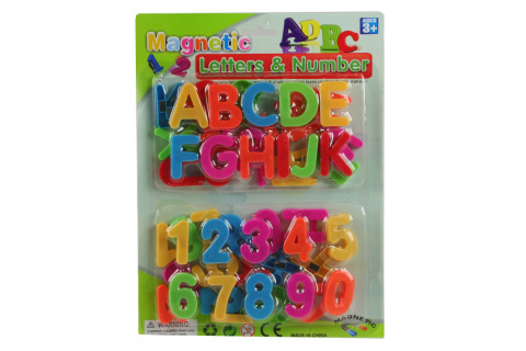 Sada magnetov-písmen a čísel. Rozmer balenia 29x21, 5cm. Veľkosť každého čísla či písmena cca 4 cm. Vek 3 + prečítať celé