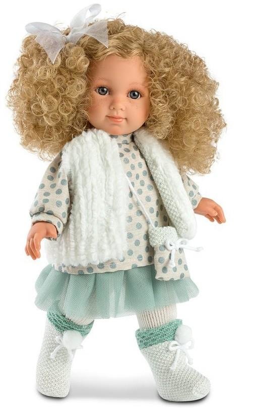 Panenka bez zvuku s měkkým látkovým tělem a s vlásky po celé hlavě, podobající se malé slečně. Velikost 35 cm. prečítať celé