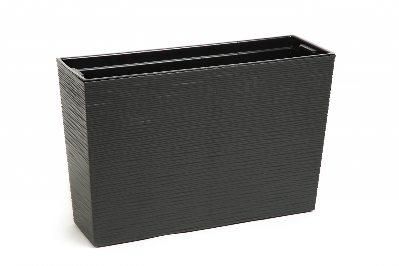 Vysoký truhlík s unikátním vzhledem připomínající proutí. Je odolný vůči UV záření a poškrábání. Je vyroben z lehkého plastu, snadno se čistí. Má černou vnitřní vložku s úchyty. Výška: 37 cm, šířka: 56 cm, hloubka: 19 cm. prečítať celé