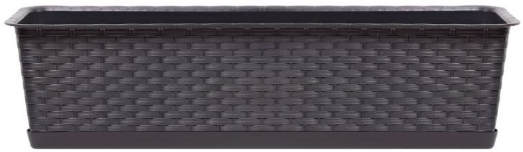 Stylový truhlík RATOLLA v imitaci ratanu v barvě umbra, s miskou. Je vhodný pro celoroční venkovní i vnitřní použití na balkón, terasu i zahradu.