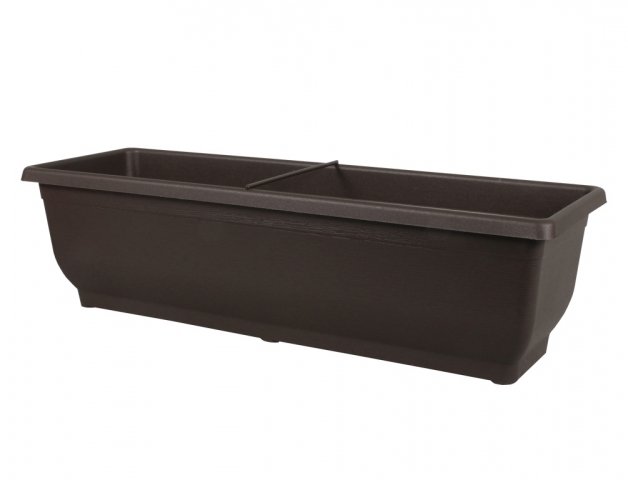 Plastový truhlík s matným zvrásněným povrchem. Má vyrovnávací nožičky pro umístění na šikmém parapetu. Truhlík má sponu proti deformaci jeho tvaru při zvětšování kořenového balu. Barva: hnědá. Šířka: 60 cm, výška: 17 cm, hloubka: 20 cm. Vhodnou podmiskou je VERBENA, NG 58303hn.