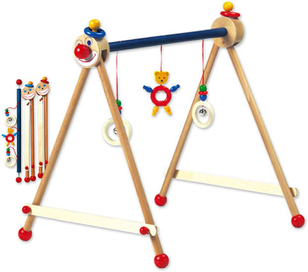 Hrazda klaun se závěsnými hračkami je určena pro naše nejmenší miminka. Tuto velmi pěknou klasickou hrazdu s veselými hračkami můžete kompletně a jednoduše rozložit a zase složit do bavlněného pytlíku. Díky tomto cestovnímu provedení ji můžete pohodlně vozit s sebou na návštěvy či dovolené.