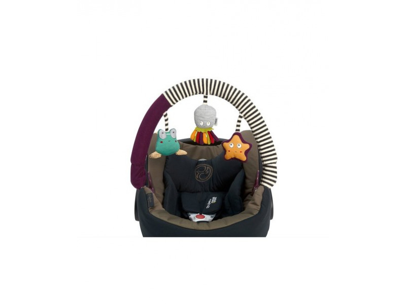 Hrazda se třemi roztomilými hračkami je určena pro připevnění na autosedačku nebo kočárek. Hračky ve tvaru chobotničky, žabáka a hvězdičky chrastí, cinkají a šustí a podněcují tak dítě k jejich zkoumání. Hračky zabaví dítě na cestách a současně podporují rozvoj jeho smyslů.