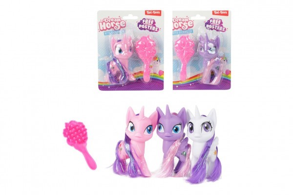 Jednorožec mini česací s hřebenem plast 10cm 3 barvy na kartě 12,5x15cm