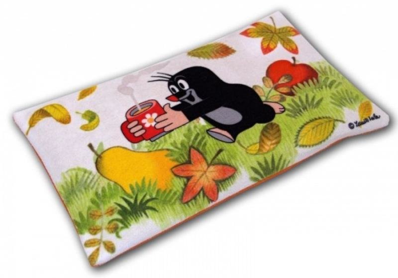 Polštářek s vyjímatelným sáčkem naplněným lněnými semínky, který se dá nahřát v mikrovlnné troubě a použít jako teplý obklad nebo nahřívadlo pod peřinu. Snímatelný povlak. Pratelný, bez sáčku se semínky! Materiál mikrovelur, obrázek tisk. Praní na 30°C, 100% polyester, prát bez výplně