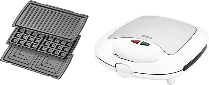3 výměnné desky - grilovací/panini, čtvercové a oblíbené vafle, elegantní nerezové provedení v bílé kombinaci, nepřilnavá povrchová úprava pečících ploch, tepelně izolovaná rukojeť, ochrana proti přehřátí, indikátor připojení k síťové zásuvce / připravenosti, příkon 700 W prečítať celé