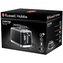 Prémiový topinkovač na 2 krajíce s vysokým leskem a chromovými prvky v designu texturovaných vlnekNastavitelný stupeň opečeníFunkce vysokého vysunutí pečivaModře podsvícená tlačítka pro funkce přerušení, rozpékání a rozmrazeníOdnímatelný tác na drobkyMřížka pro ohřívání pečiva
