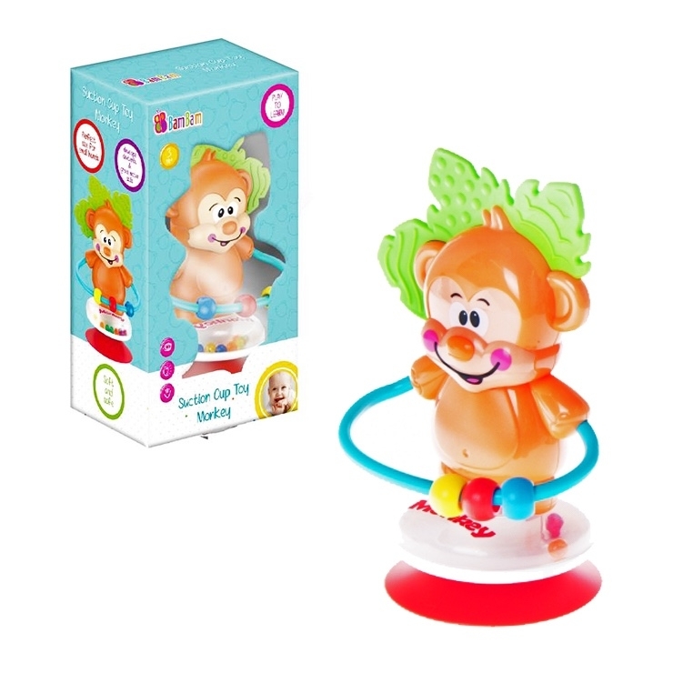 Hračka, kterou lze připevnit na stůl, tác na vozík nebo stůl na krmení. Postava smějící se opice obklopena obručí naplněnou barevnými míčky v různých barvách. Určené od věku 6 měsíců. prečítať celé
