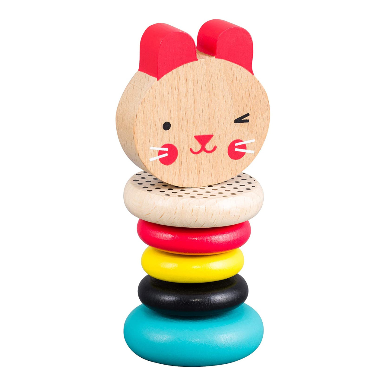 Barevné chrastítko vydává při jemném otřesu uklidňující zvuk klepání. Pět hladkých prstenů z bukového dřeva je ideální pro uchopení dětskými ručičkami. Zářivé barvy a vzory vyvolávají v dětech zvídavost a zajíčka si oblíbí každé malé dítě. Hlavní vlastnosti: Vyrobeno z dřeva z udržitelných...