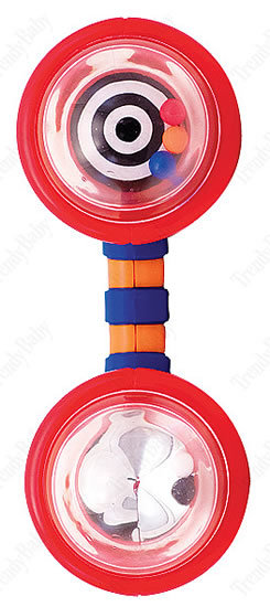 Chrastítko svým jemným chrastěním stimuluje sluch a zároveň podporuje rozvoj zraku. Zrak novorozenců ještě není plně vyvinut, červená a oranžová barva je pro ně nejsnáze viditelné, upřednostňován je vysoce kontrastní černobílý vzor. Tenké sluchátko je lehko uchopitelné i pro nejmenší děti. Bez povrchových laků, bezpečné do pusy. Vhodné od narození.