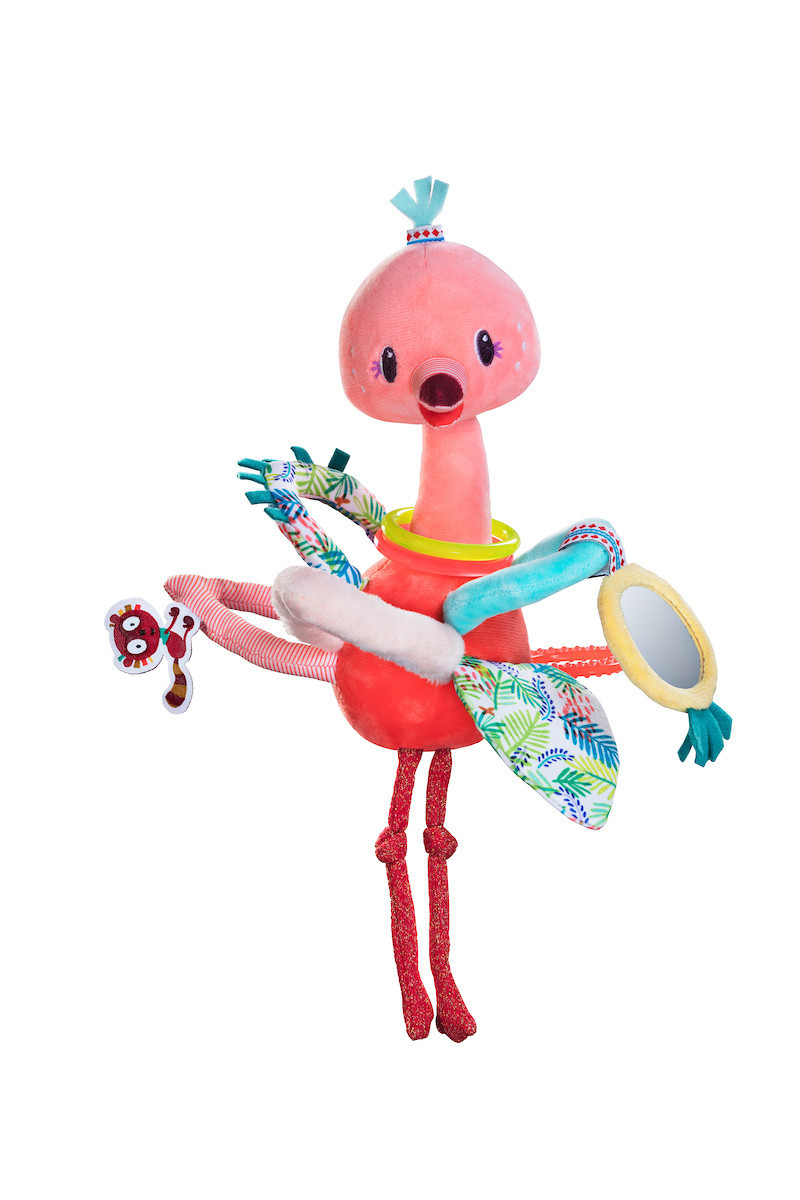Roztomilá růžová kamarádka pro nejmenší děti. Hračka je vhodná pro děti od 9 měsíců. Na chrastítku děti zaujmou různé textury, šustění, zrcátko nebo kroužky pevně uchycené kolem krku hračky. Hračka má všité kousátko, které může dětem ulevit při prořezávání prvních zoubků. Hračka je vyrobena z bezpečných materiálů, lze prát na 30°C na jemný program. Rozměry hračky jsou 32 x 22 x 20 cm.