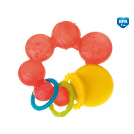 Chrastítko s chladícím kousátkem spojuje výhody chladícího kousátka a chrastítka. Obsahuje měkké části, které jsou vyplněny prověřenou mikrobiologicky testovanou vodou. Voda v kousátku je obarvena pouze potravinářským barvivem. Pomáhá tišit bolest dásní v období růstu zubů. Materiál je odolný...