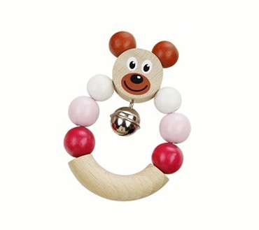 Objavte kúzlo detského smiechu s ružovým dreveným chrastítkom medvedík od Detoa!