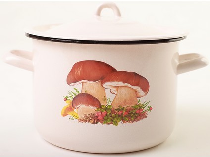 Kvalitní smaltované nádobí a smaltované doplňky s dekorem hub, které jsou obzvlášť vhodné na Vaší chatu či chalupu.
