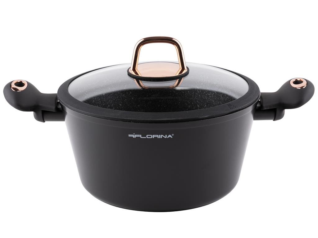 HRNEC S POKLIČKOU ROSE 24 CM SPECIFIKACE: MATERIÁL: ALUMINIUM; TLOUŠŤKA: 3,50MM; KOVANÝ; VNITŘNÍ POVRCH: 2-VRSTVÝ NEPŘILNAVÝ ČERNÝ; VNĚJŠÍ POVRCH: NEPŘILNAVÝ ČERNÝ, ODOLNÝ PROTI VYSOKÝM TEPLOTÁM; ÚCHYTY SOFT TOUCH S ROSE GOLD ELEMENTY; VHODNÝ NA INDUKCI; OPATŘEN PROTIPOŽÁRNÍ OCHRANOU; ČERNĚ MALOVANÝ - SKLENĚNÁ POKLIČKA SE SILIKONEM