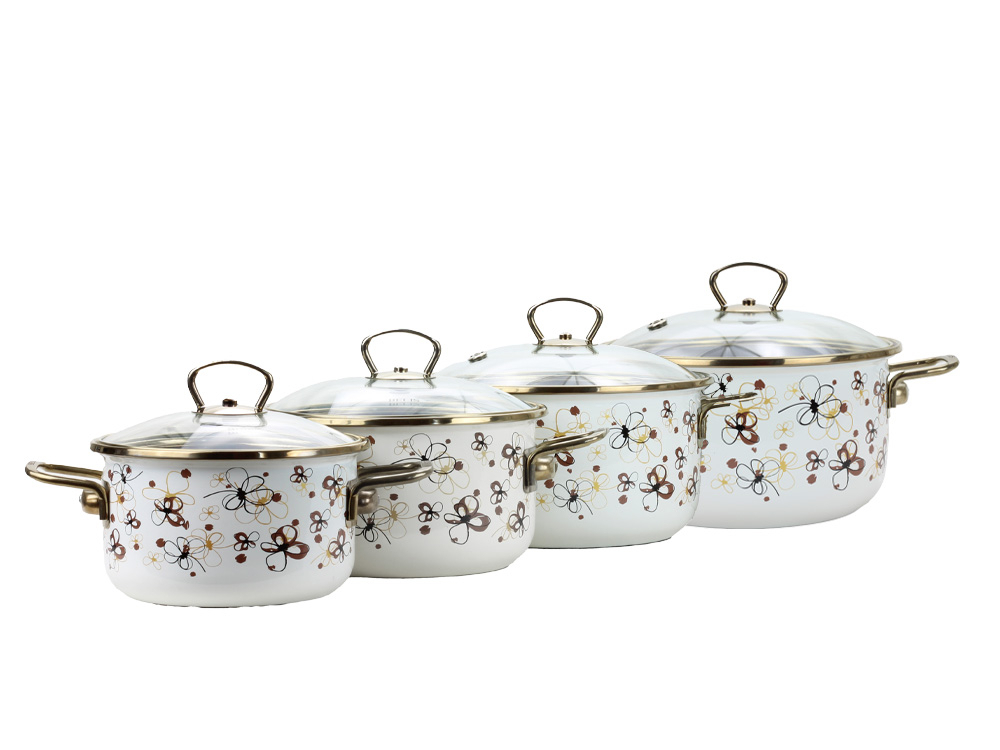 BELIS Sada smaltovaného nádobí PREMIUM krémový 4-dílná