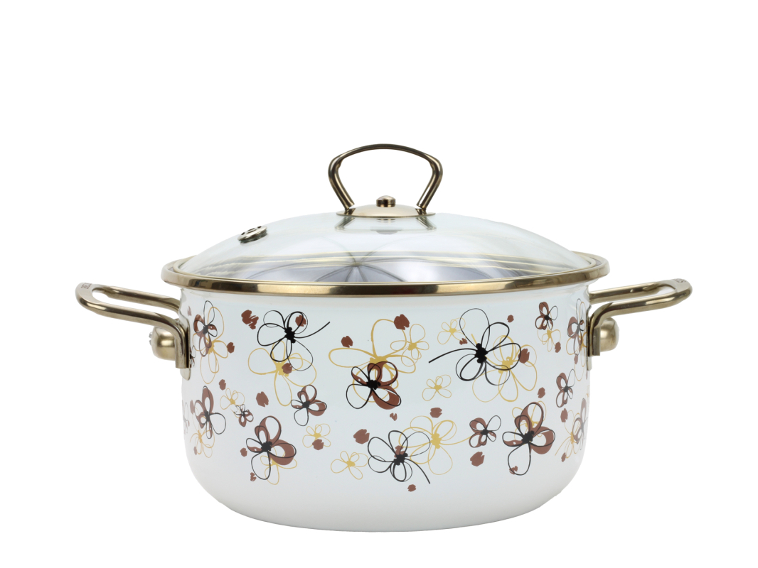 BELIS Smaltovaný hrnec se skl. poklicí PREMIUM krémový 18 cm/2,2l