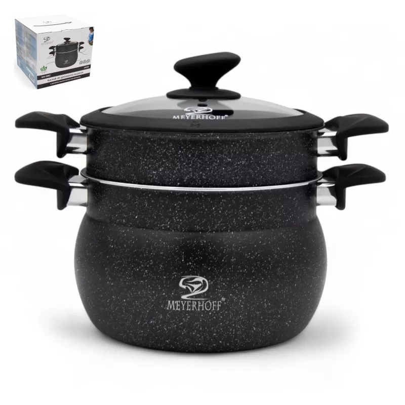 Hrnec od renomované značky Meyerhoff vyrobený z vysoce kvalitní nerezové oceli potažené mramorovým povlakem, nepřilnavý. Je ideální pro každodenní vaření dietních jídel pro lidi, kteří oceňují zdravý životní styl. Maso nebo zeleninu můžeme v parním hrnci připravit způsobem, který nevyžaduje tuk...