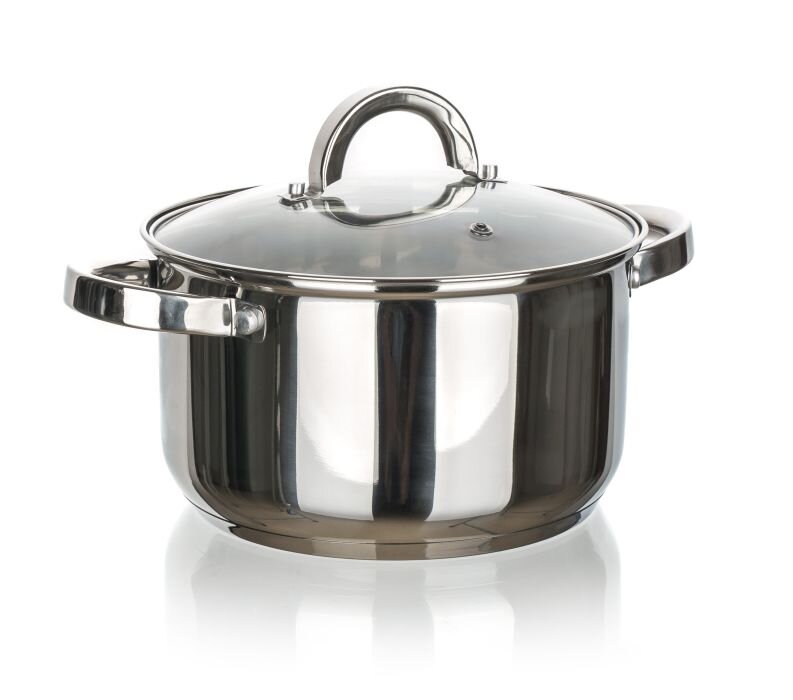 Nerezový hrnec se skleněnou poklicí CUISINO má vnější i vnitřní povrchovou úpravu v lesku a na vnitřní straně měrku objemu, nerezový čudlík i držadla (přišroubované). Hrnec lze používat na všechny typy varných desek, včetně indukce. Rozměry: průměr 24cm, výška 14cm Materiál - nerez 201 (tělo 0,4...