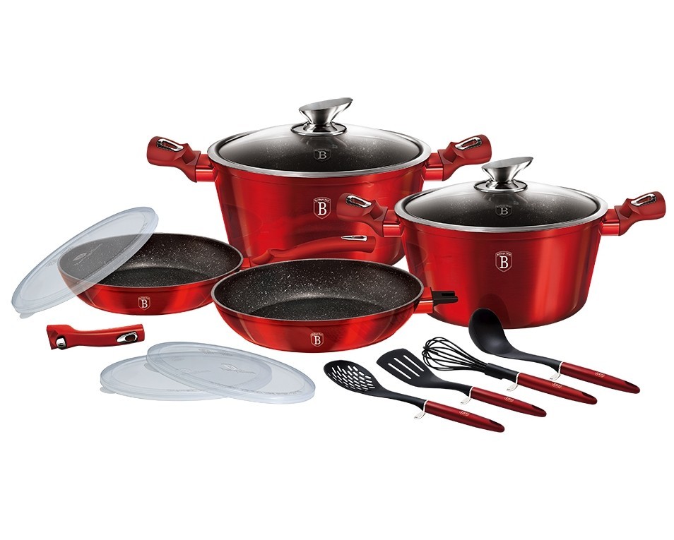 Sada nádobí Berlingerhaus s mramorovým povrchem 13 ks Burgundy Metallic Line