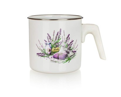 kvalitní smaltovaná ocel, ručka je vyrobena z bílého plastu dekor levandule průměr 12 cm, výška 12 cm, tloušťka stěny je 0,5 mm, objem 1200 ml vhodné na všechny typy sporáku mimo indukci může do myčky nádobí EAN 8591022352038 prečítať celé