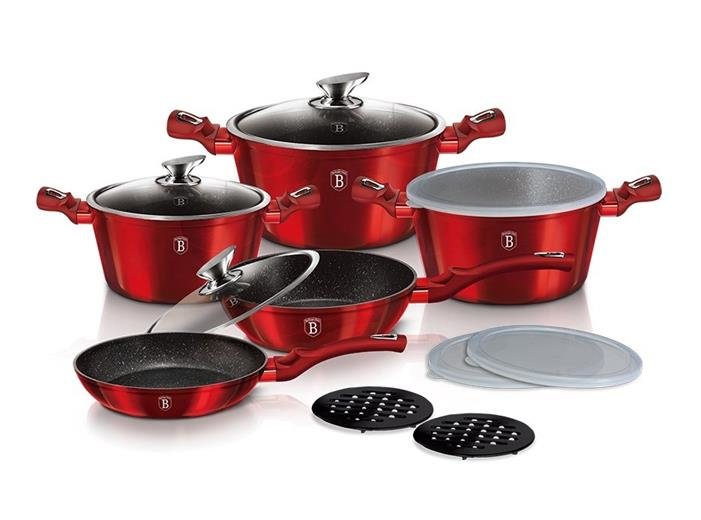 Sada nádobí Berlingerhaus s mramorovým povrchem 13 ks Burgundy Metallic Line