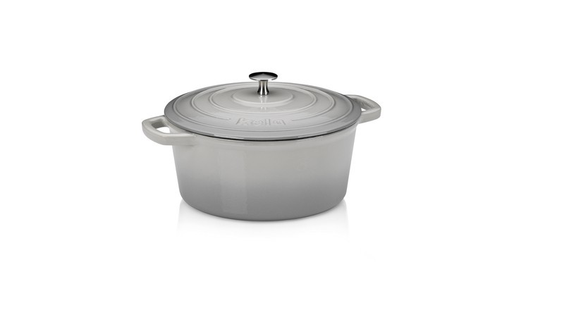 Trendy nádobí s dlouhou životností ze série kela Calido: kulatý pekáč s lesklým povrchem a poklicí má průměr 26 cm a pojme 4,6 litru. Tento šedý kastrol je vyroben z litiny a má béžově smaltovaný vnitřek. Pekáč je ideální pro opékání masa (do 300°C) a pro dušená jídla, která by se měla dusit ve vlastní šťávě po dlouhou dobu. Pekáč je součástí rozsáhlého sortimentu nádobí! Litinový smaltovaný světle šedý/béžový 26 cm , 12 cm v, 4,6 l