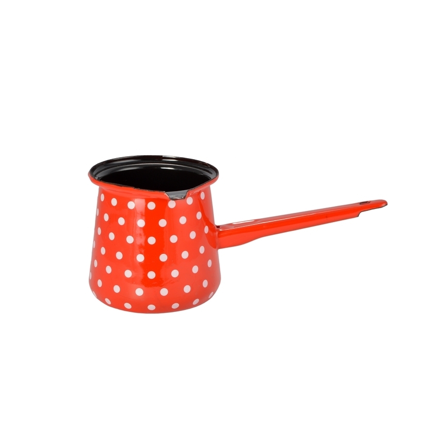 Smaltovaná džezva vhodná na plynové, elektrické a sklokeramické sporáky. Vhodná do myčky nádobí, ale nedoporučujeme. Objem 800 ml, průměr 10.5 cm a výška 11 cm. Drobné vady na dekorování nebo smaltování nejsou předmětem reklamace. EAN 0000061505001 prečítať celé