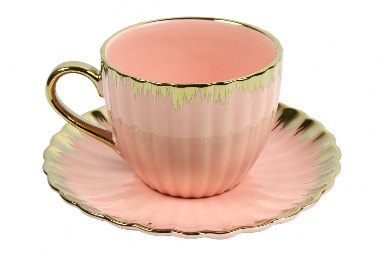Hrnek s podšálkem Charlotte 13 cm růžový/zlatý