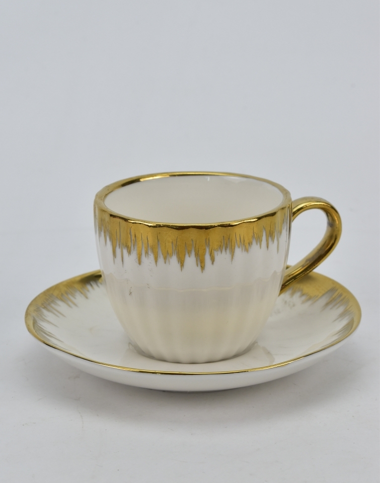 Hrnek s podšálkem Charlotte 11 cm bílý/zlatý II. jakost