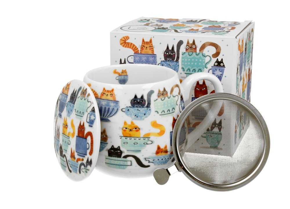 Hrnček na bylinky MAČKY V HRNČKU o objeme 400 ml je ideálnou voľbou pre milovníkov originálnych a praktických doplnkov do domácnosti či kancelárie. Prineste si domov radosť z každého dúška čaju alebo bylinkového nápoja a užite si chvíľku pokoja s motívom roztomilých mačiek, ktoré vám vykúzlia úsmev na tvári.