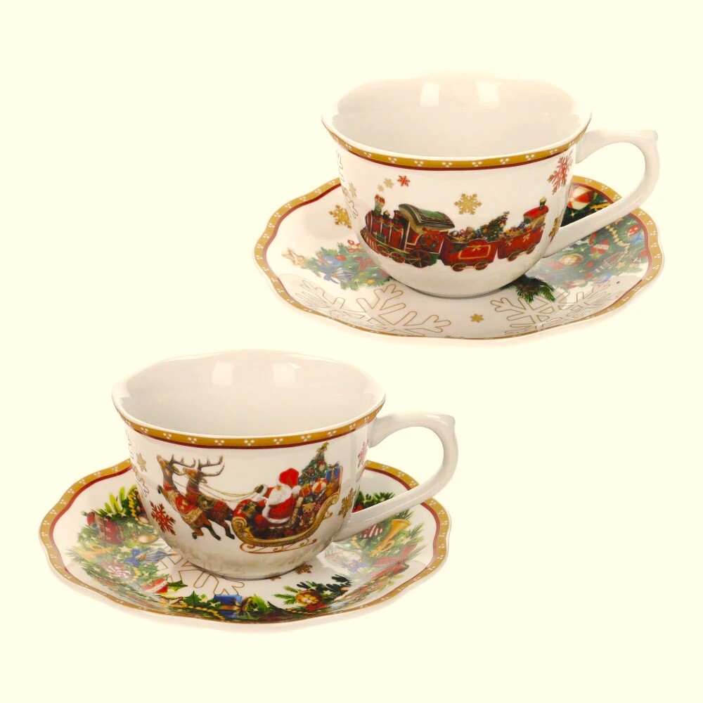 sada 2 šálků s podšálkem z Christmas kolekce Brandani je dokonalým doplňkem, díky němuž budou vaše čajové přestávky ještě kouzelnější. během svátečního období. Zdobí je rafinované vánoční motivy. promění každý doušek v okamžik čisté sváteční atmosféry.Shodný podšálek dodává šálkům nádech...