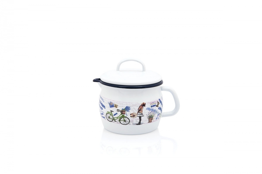 Metalac Provance, smaltovaný baněný hrnek s výlevkou a pokličkou 12 cm, 1,3 l