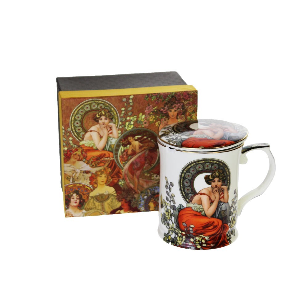 HOME ELEMENTS Hrnek 400 ml se sítkem a víčkem, Mucha světlý