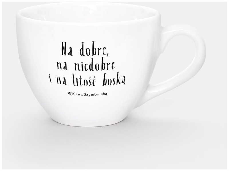 Kubek biały z uchem 500ml. Wisława Szymborska Na Dobre, Na Niedobre I Na Litość Boską, Nadwyraz