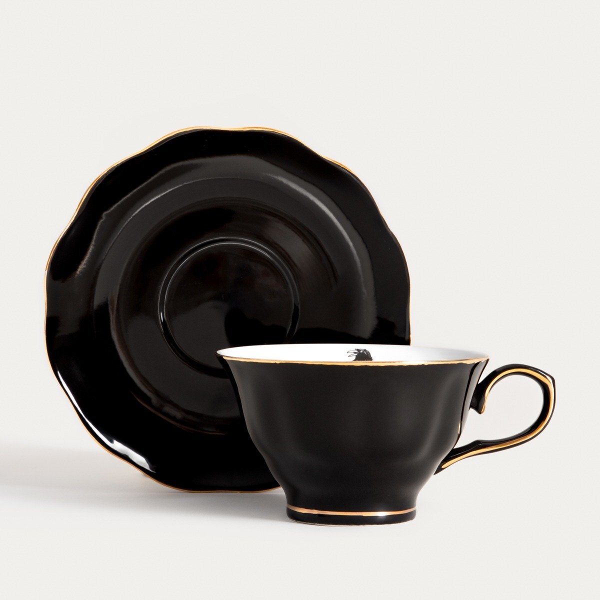 Filiżanka | BARIK | ze spodkiem czarna z krukiem | 0,15 l | 750458
