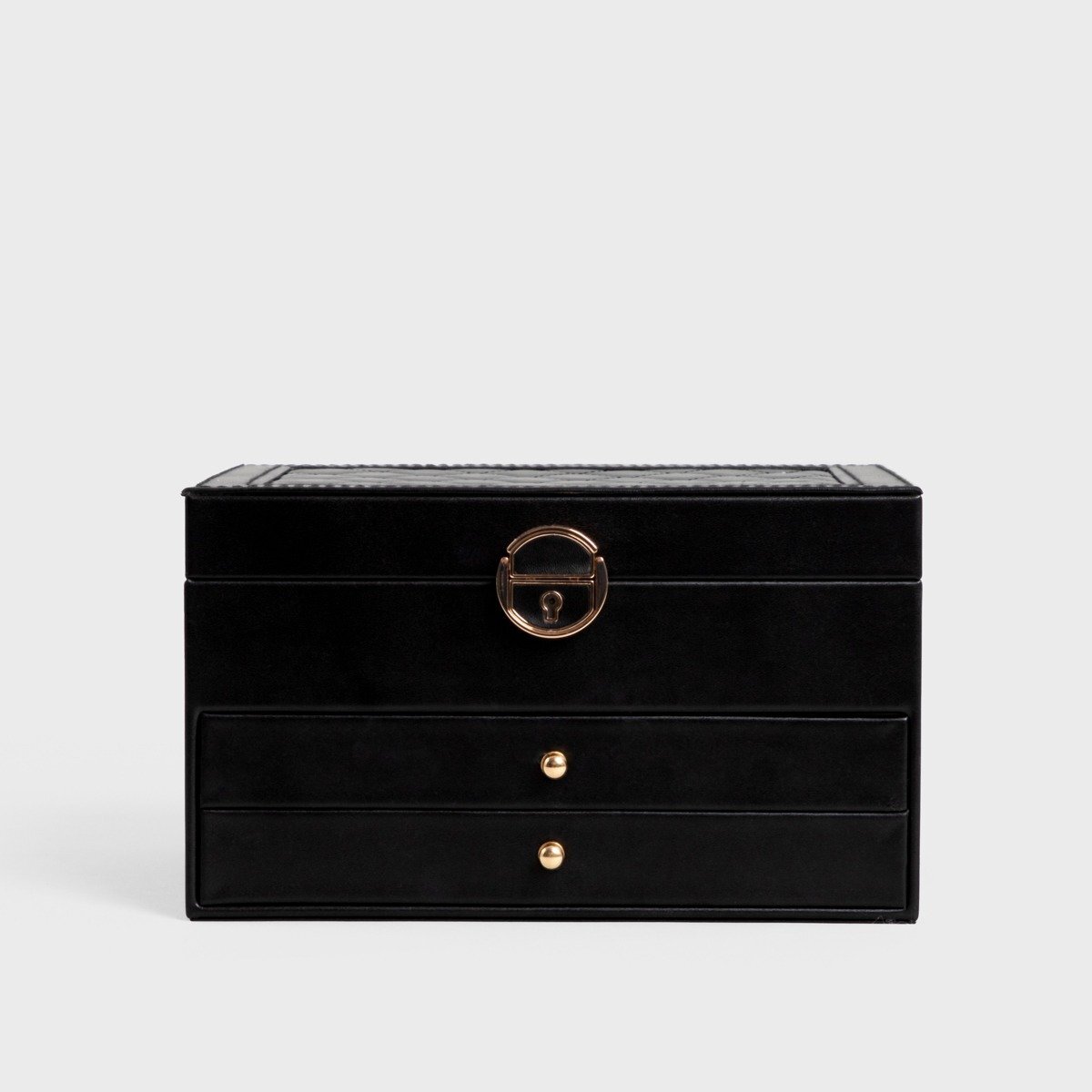Szkatułka na biżuterię | VIRELLO | kuferek czarny | 23x17x13,5 cm | 726484
