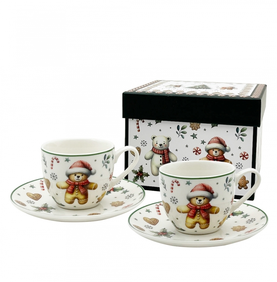 Sada dvou šálků a podšálků 90 ml VÁNOČNÍ PERNÍČEK MEDVĚD v dárkové krabičce