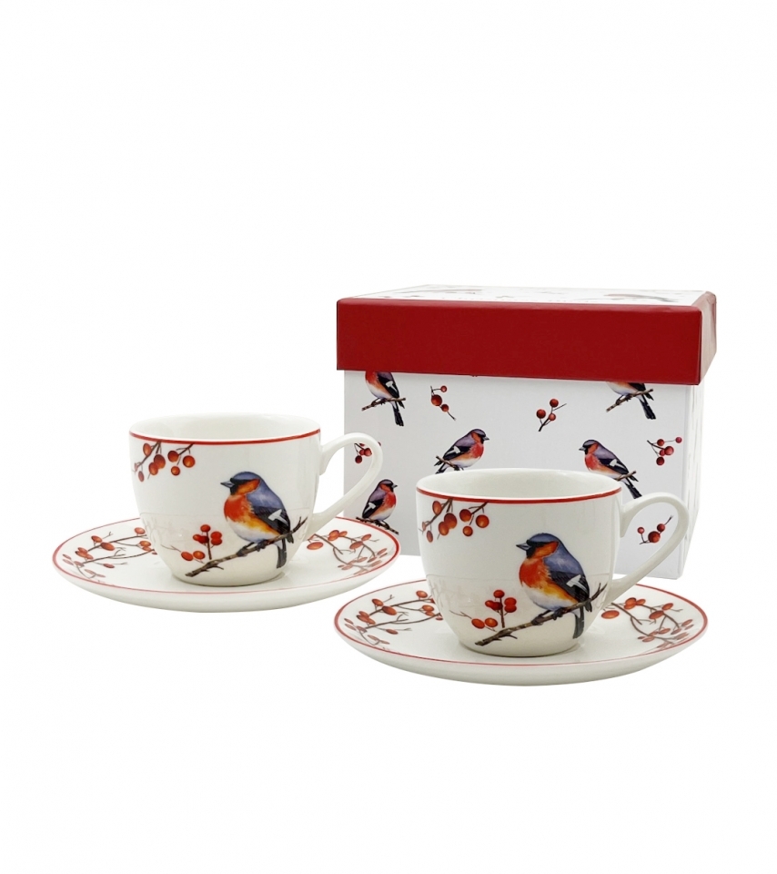 Sada dvou šálků a podšálků 90 ml VÁNOČNÍ PTÁČCI 3 v dárkové krabičce
