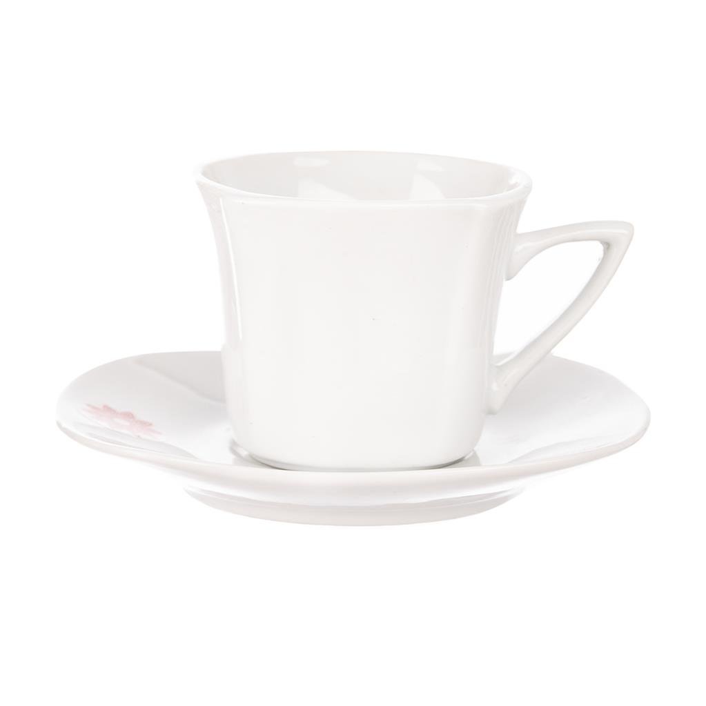 Hrnek s podšálkem. Materiál: porcelán. Rozměry: objem 0,1 l, pr.6 cm, v. 5,5 cm, podšálek 12x12x cm. prečítať celé