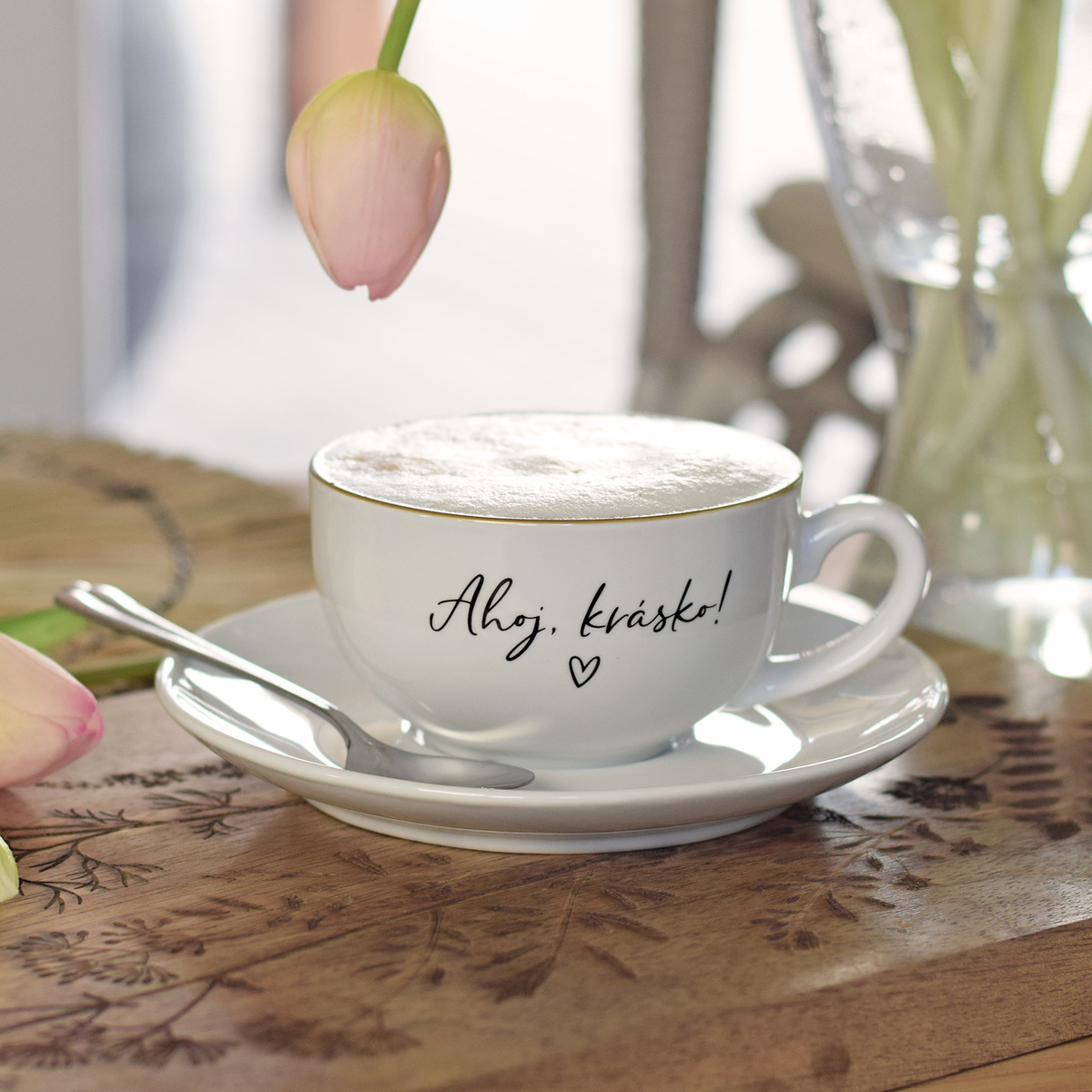 HOUSEDECOR Šálek s podšálkem - Ahoj, krásko!