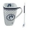 Hranatý porcelánový hrnek o objemu 600 ml s elegantním dekorem modrých teček na bílém podkladě.II. jakost - chybí lžička a pomačkaný obal prečítať celé