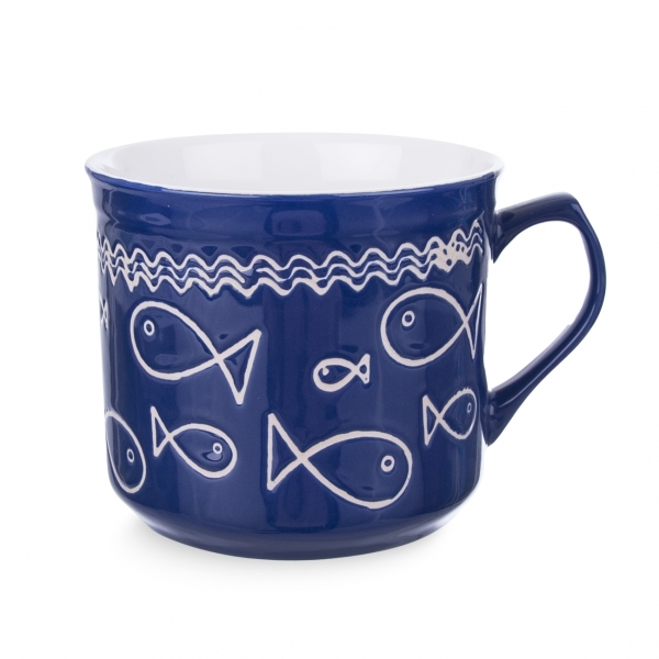 Hrnček varák Ryby 0,5 l je ideálnym doplnkom nielen pre rybárov či milovníkov prírody, ale aj pre všetkých, ktorí ocenia praktický a štýlový keramický hrnček s originálnym dekoračným motívom rýb. Tento veľký hrnček vás poteší svojou veľkosťou i dizajnom.
