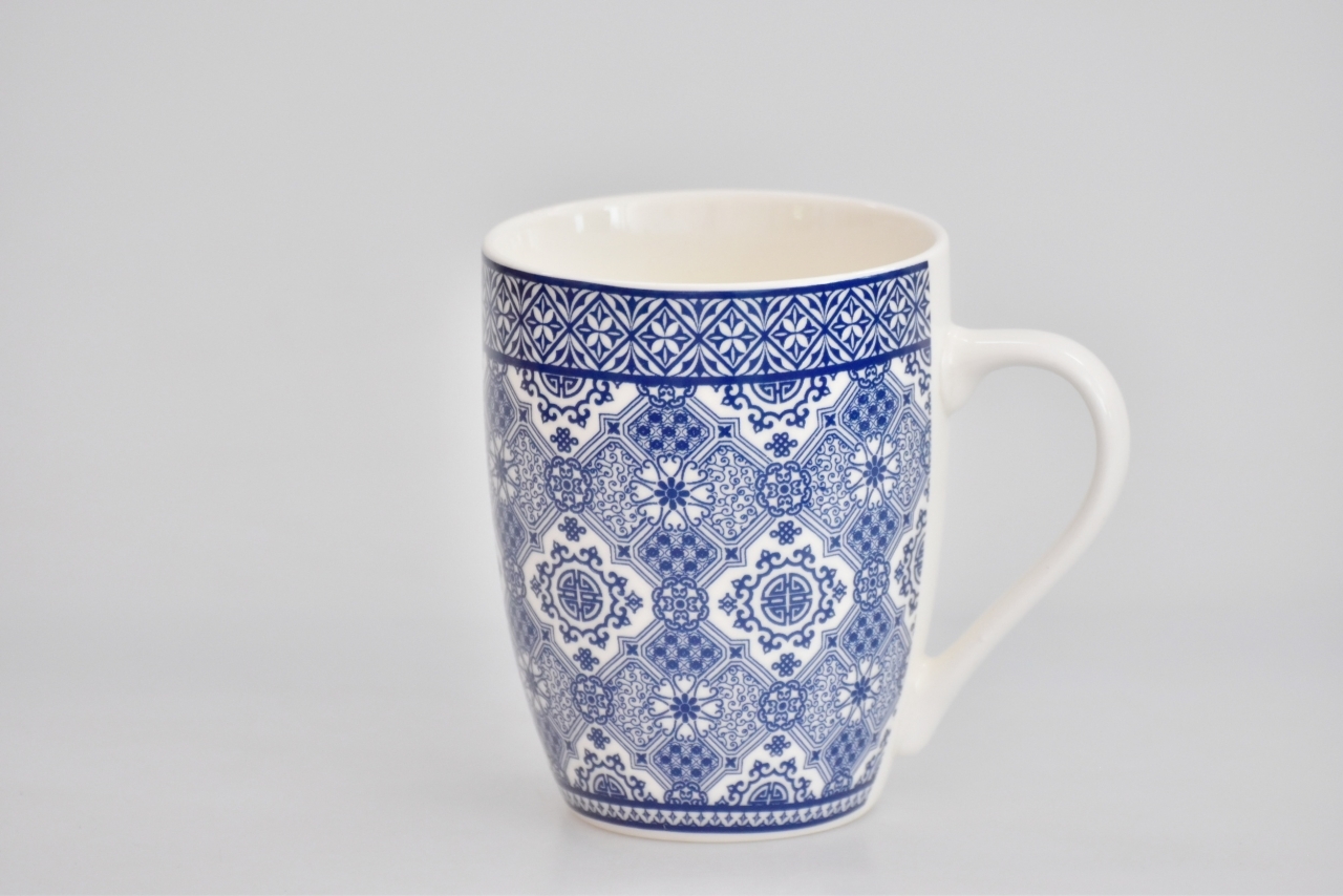 Klasický porcelánový hrnek s dekorem v modré barvě. Hrnek je vhodný na použití do mikrovlné trouby a je možné ho mýt v myčce nádobí.Materiál: porcelánObjem: 350 mlRozměry: 11x12,5x8,5  cm 1 balení = 4ks. prečítať celé