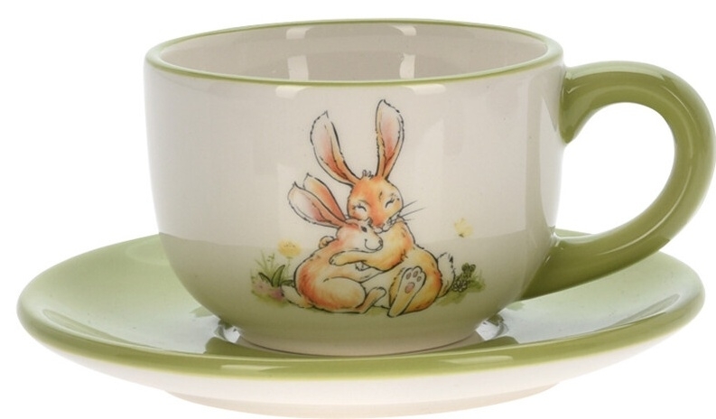 Hrníček s podtalířkem Zajíčci,250 ml, barva zelená