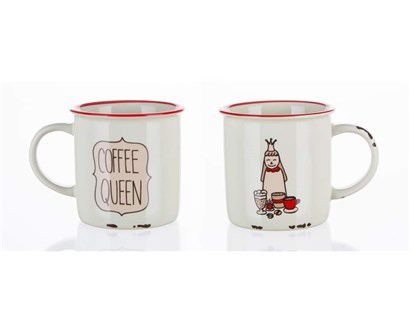 Hrnek COFFEE STORY 310 ml Queen je vyroben z keramiky, vhodný na horké i studené nápoje. Dodáván ve více designech, výška hrnku 8,5 cm, průměr horní 8,8 cm průměr dolní 7,5 cm. Hrnek lze používat do mikrovlnné trouby a mýt v myčce na nádobí. Díky vtipnému dekoru je i vhodným dárkem.